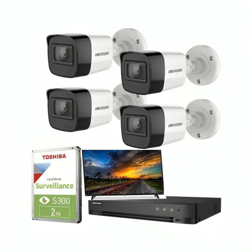 (تركيب 4 كاميرات 8 ميجا + جهاز تسجيل + هارد دسك 1 تيرا + شاشه 32)